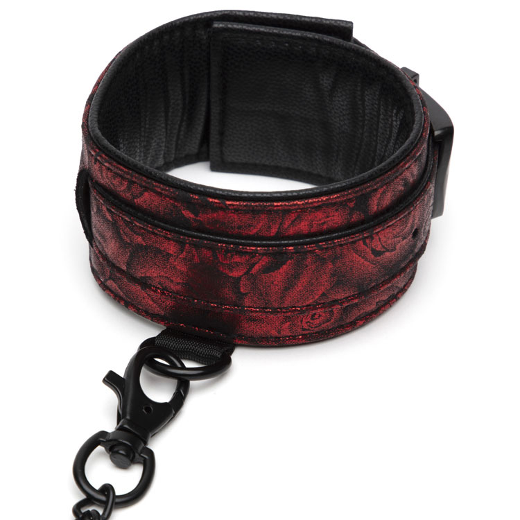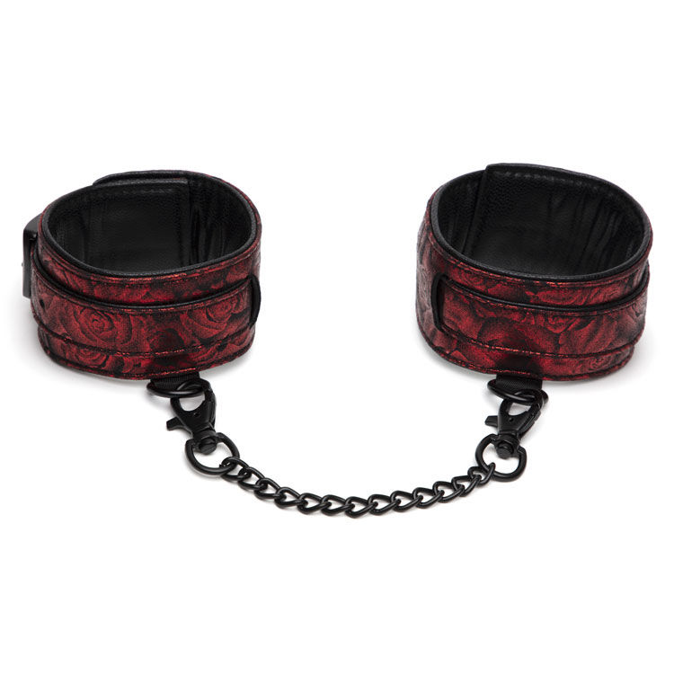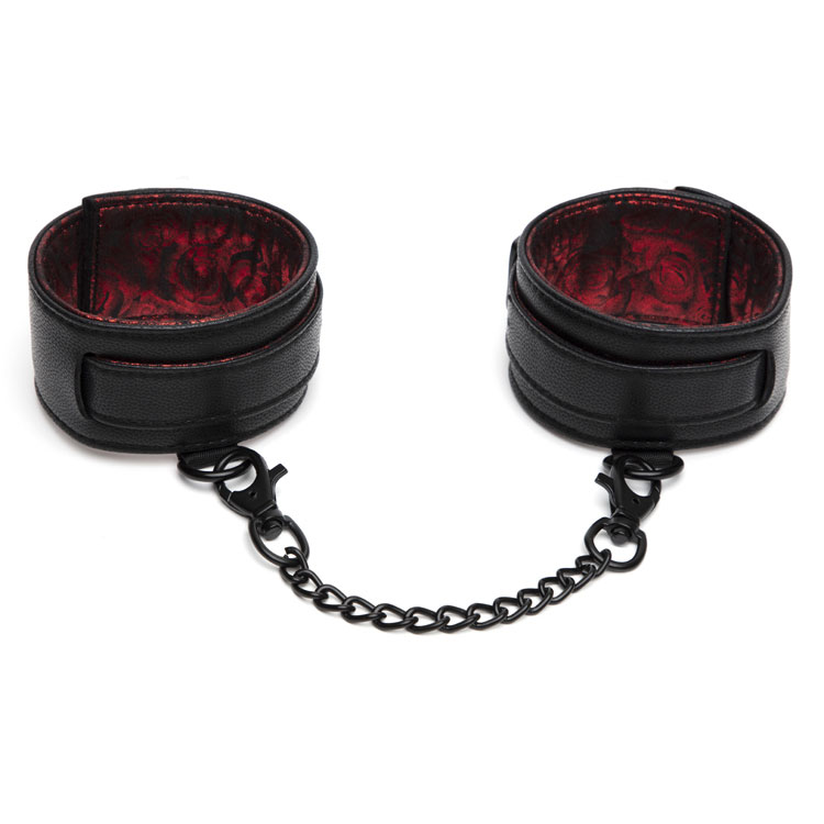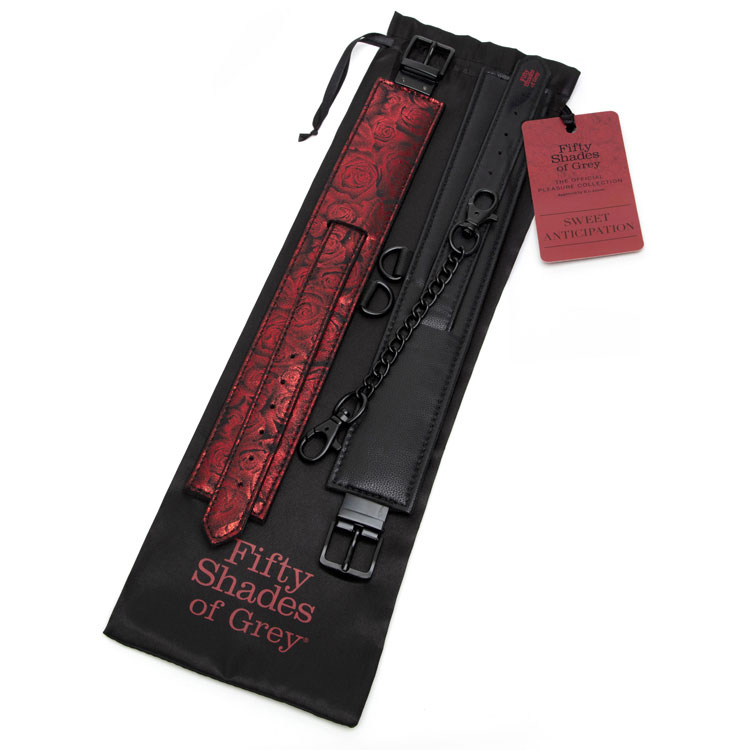Créez votre propre mise en scène de Christian et Ana avec les bracelets de cheville Sweet Anticipation. Fabriqués avec un rembourrage doux dans un magnifique coloris noir et rouge à motifs roses, ils promettent une retenue sensuellement douce mais d'une fermeté rassurante.