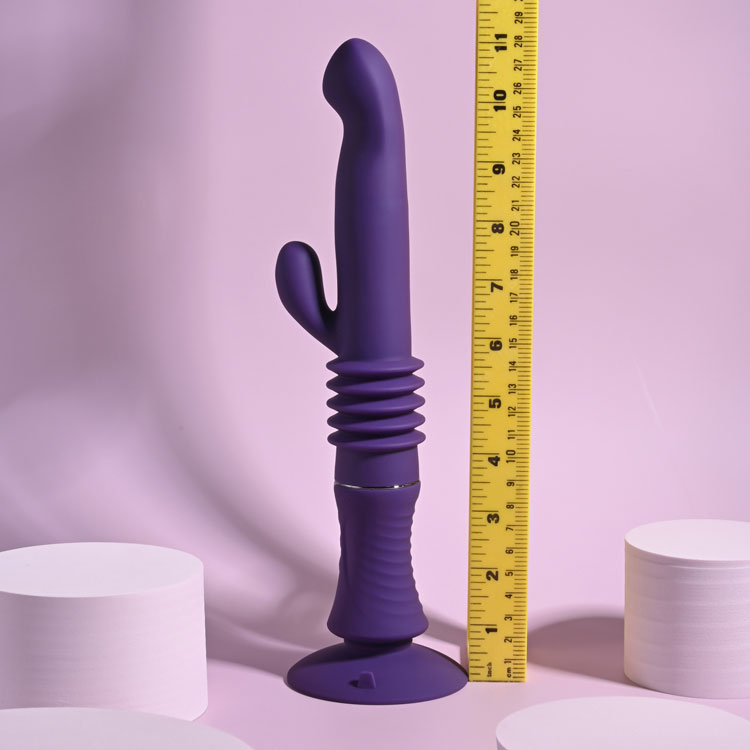 Vivez le plaisir inoubliable de plusieurs Hoppy Endings avec ce puissant vibromasseur lapin poussant. Des vibrations à plusieurs vitesses résonnent à travers la tige principale et le stimulateur de lapin, éclairant vos zones érogènes lorsque le silicone flexible se déplace avec votre corps. Ensuite, engagez la poussée robuste qui ressemble à la vraie chose! Jusqu'à un pouce de poussée pour une sensation profonde qui vous remplit d'une délicieuse force de curling des orteils. Détendez votre prise autour de la poignée texturée ou utilisez la ventouse pour d'innombrables possibilités mains libres.
